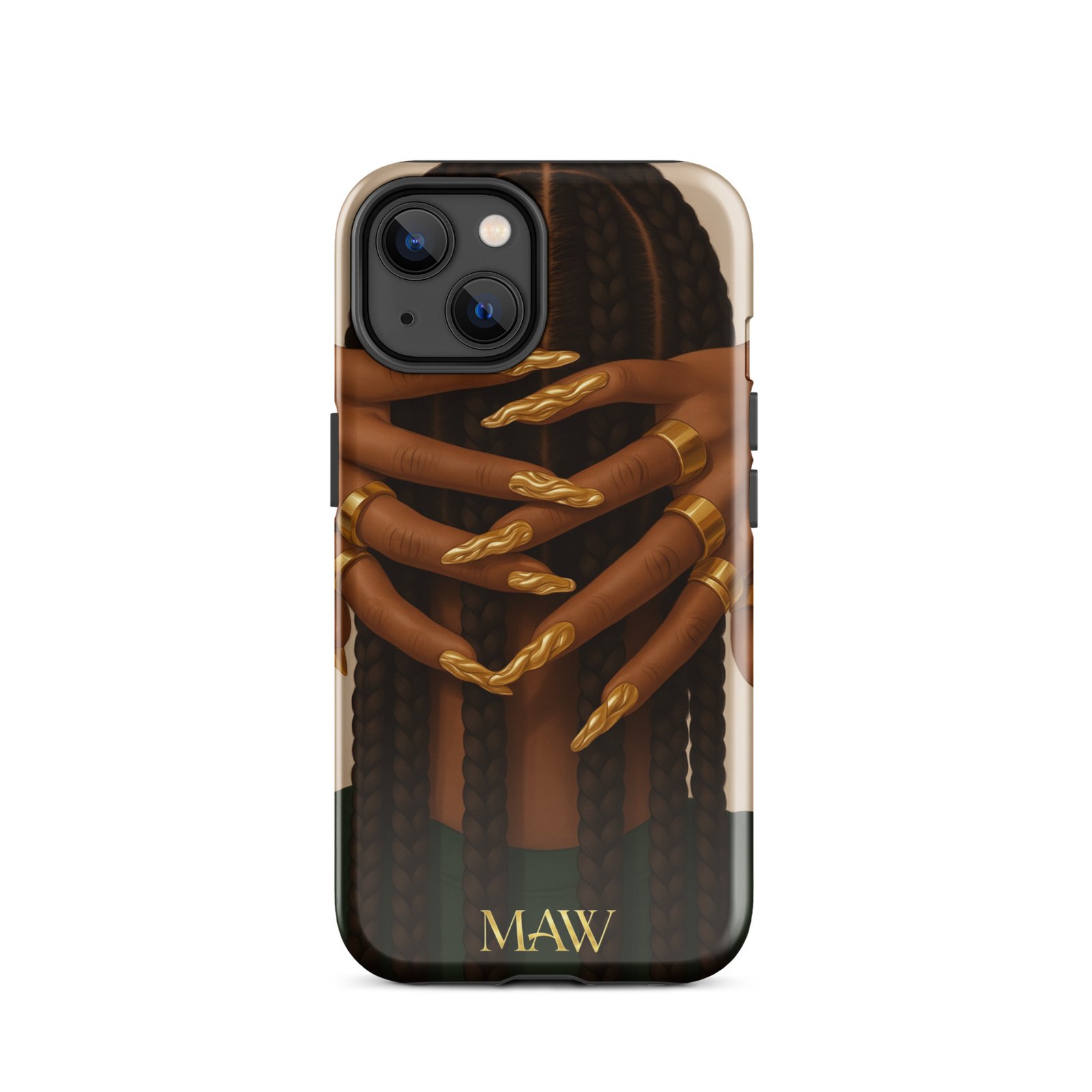 La coque est encore plus belle en vrai. Le graphisme avec les tresses et les bijoux d'ongles est super original. On sent que c'est du solide et ça ne glisse pas des mains. C’est devenu mon accessoire mode préféré, j'adore le concept !